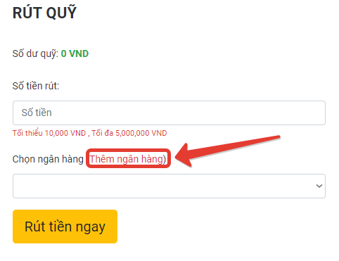 Lưu ý: Chú ý số tiền rút tối thiểu và tối đa web có ghi ở bên cạnh.